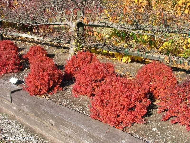 Привлекательный сорт, выделяется постоянно меняющейся в течение сезона окраской. Весной распускающиеся листья сверкающего оранжевого цвета, летом они становятся тёмно-бордовыми с золотистой каймой. Осенью приобретают пламенно-оранжевую или кирпично-красную окраску. Куст высотой 35 см и шириной 60 см, растёт очень медленно, плоды завязывает редко.