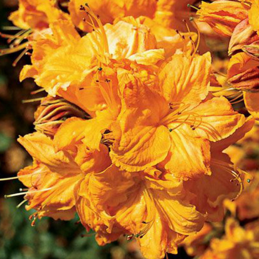 Крупные шаровидные соцветия вмещают в себя до 10 бутонов. Размер одной цветочной кисти составляет примерно 30 см. Диаметр каждого воронкообразного цветка дотягивает до 5 см. Жёлто-оранжевые цветы с более светлым горлышком и розоватыми гофрированными краями лепестков источают сильный сладкий аромат. В сердцевине крупных бутонов насчитывается по 5 тычинок. Эффектное растение напоминает сияние ночных фонарей.