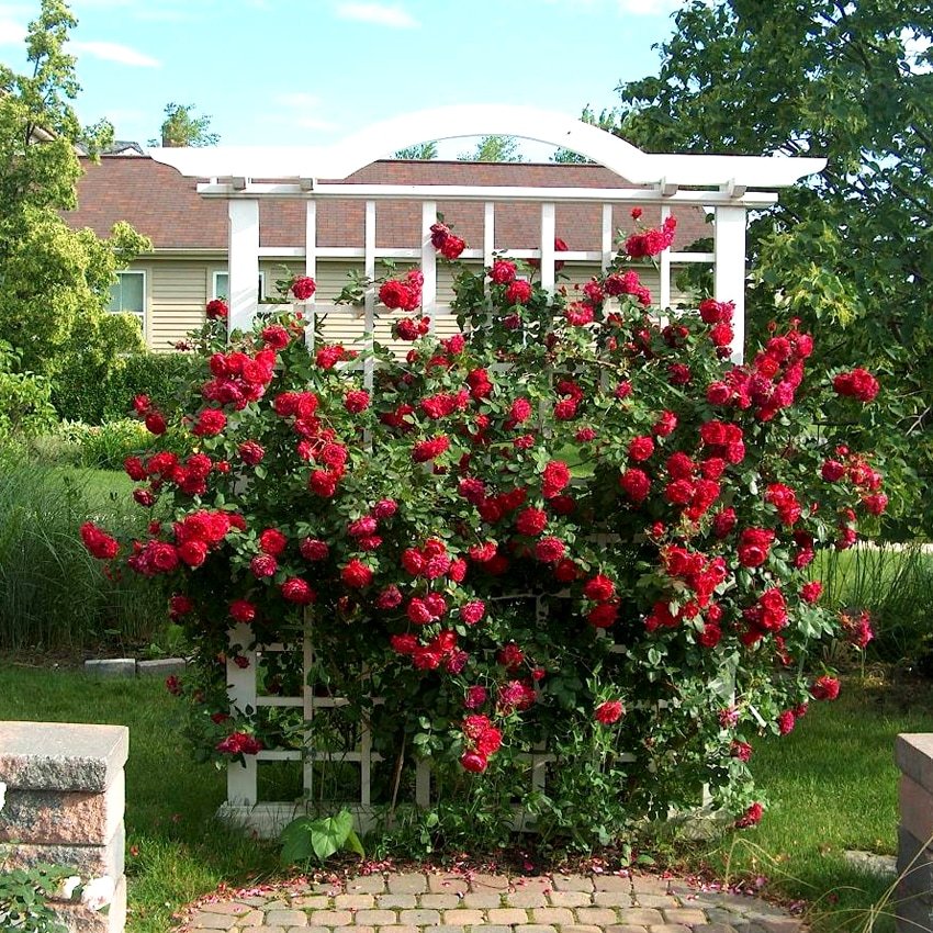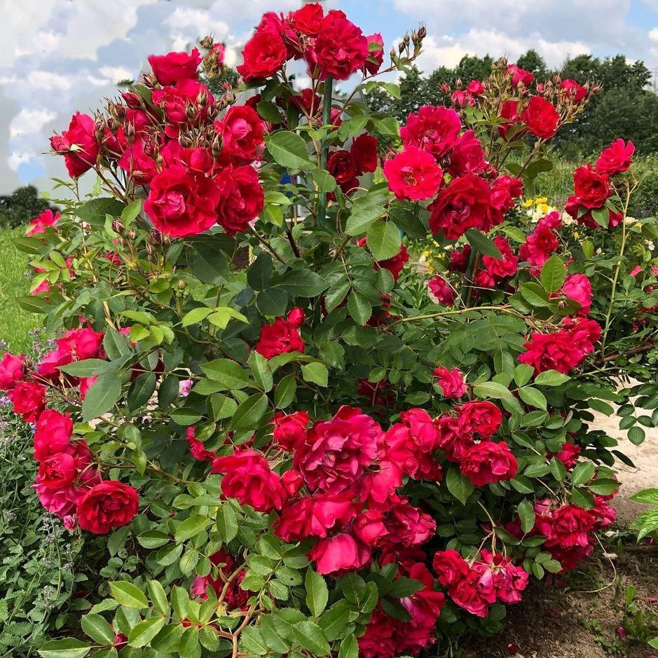 Куст мощный, распростёртый, высотой 150-200 см и шириной 150-180 см, с длинными дугообразными ветвями, требует опоры.