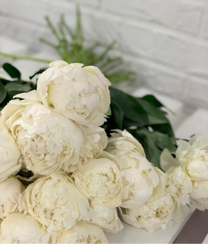 Цветок диаметром 19 см, плотно набитый, бело-кремовый, нежно-переливчатый, с подсветом от колец тычинок.