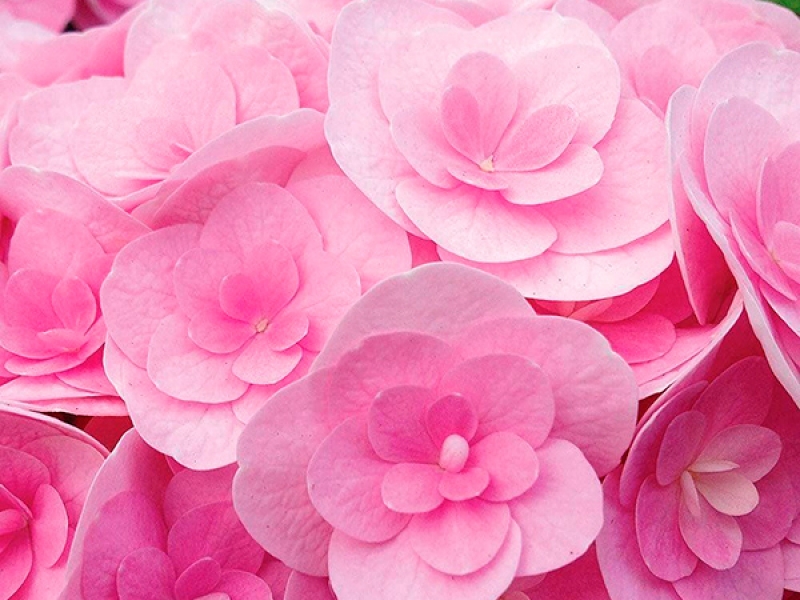 Цветки махровые розовые, розетковидные. При посадке в кислую почву изменяют цвет до светло-голубого. Цветёт на прошлогодних побегах и на побегах текущего года в июле-сентябре. Подходит как для открытого грунта, так и для контейнеров. Место солнечное или полутенистое. На зиму требует укрытия или заноса контейнеров в неотапливаемое помещение с целью сохранения цветковых почек.