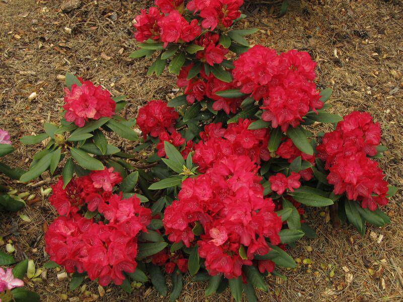 Цветение польского рододендрона Wladyslaw Jagiello/Royal Red наступает в конце мая, хотя первые бутоны появляются за месяц до этого. Крупные цветы, диаметром до 8 см, собраны в плотные соцветия с 12-15 бутонами. легкое гофрирование по краю лепестков придает цветам еще больший зрительный объем. Яркое зрелище цветения будет обязательно сопровождаться восторженными взглядами домочатцев и соседей все 3 недели цветения.