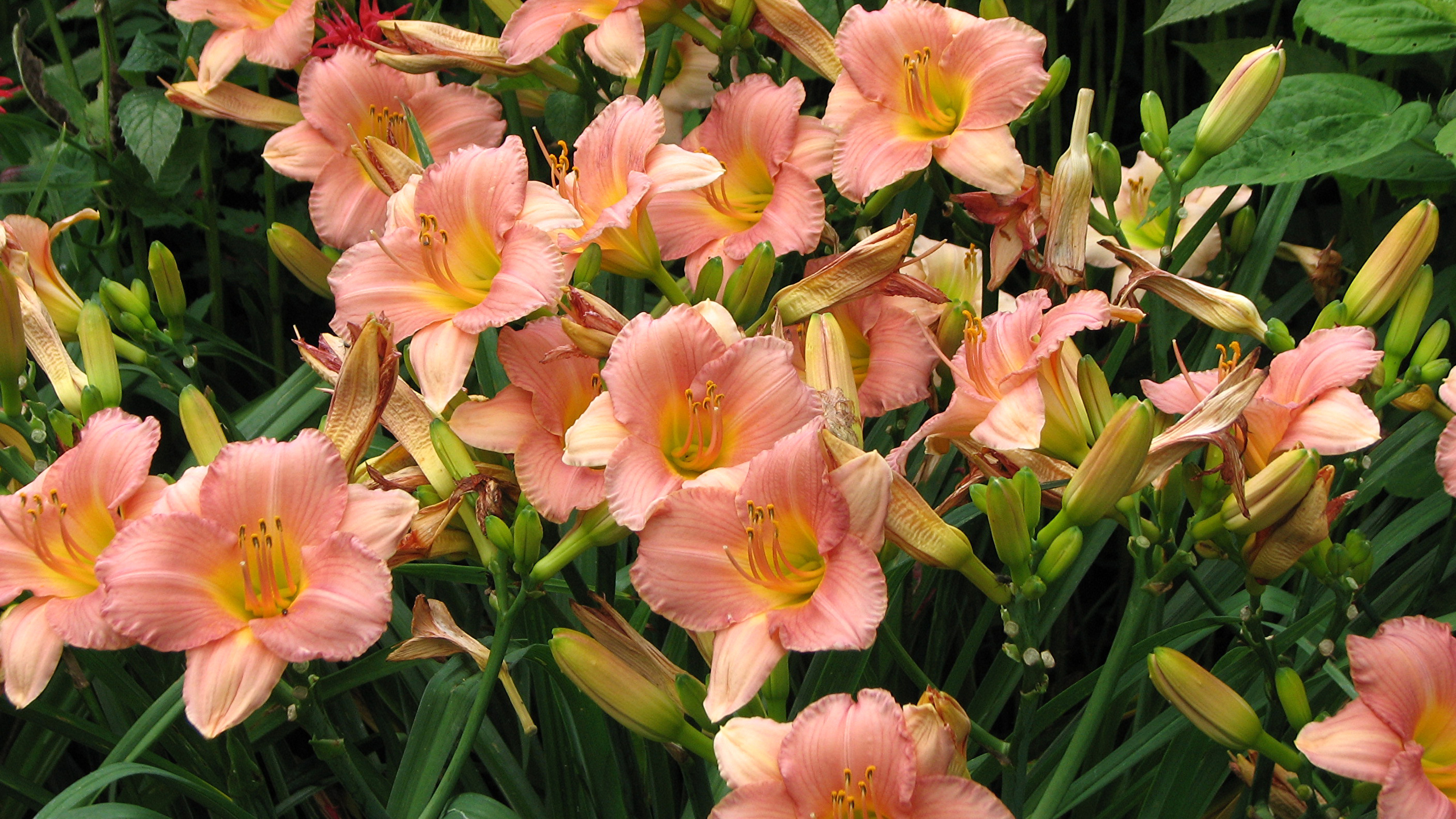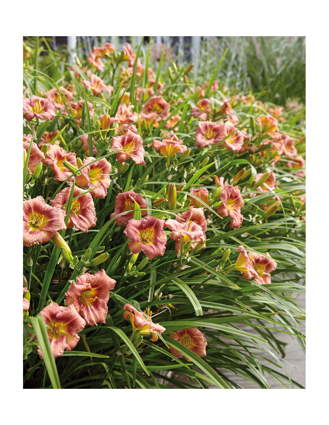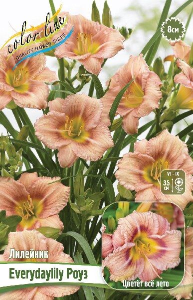 Сортосерия «EveryDailily». Взрослые кусты дают по 400 цветков за сезон. Цветки диаметром 8 см, розовые с более тёмным глазком над жёлто-зелёным горлом. Цветение длительное, в июле-сентябре.