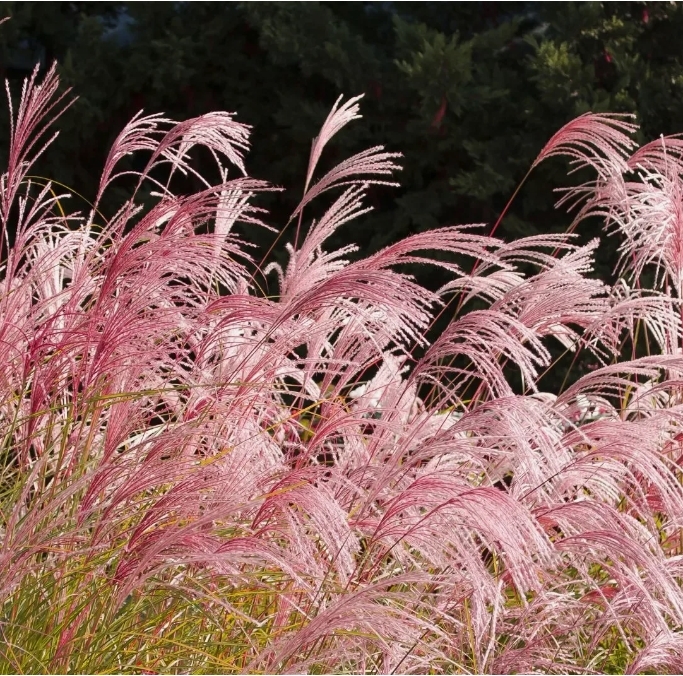 Весной отрастает поздно. Листья узкие, зелёные. Цветки вначале розовые, затем серебристые, в перистых колышущихся соцветиях. Цветение в августе-сентябр