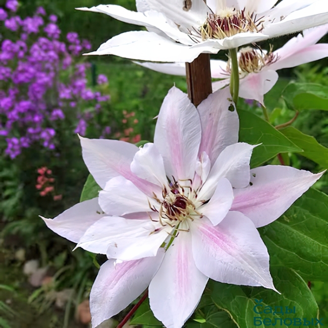 Этот клематис используется как в одиночной, так и в групповой композиции