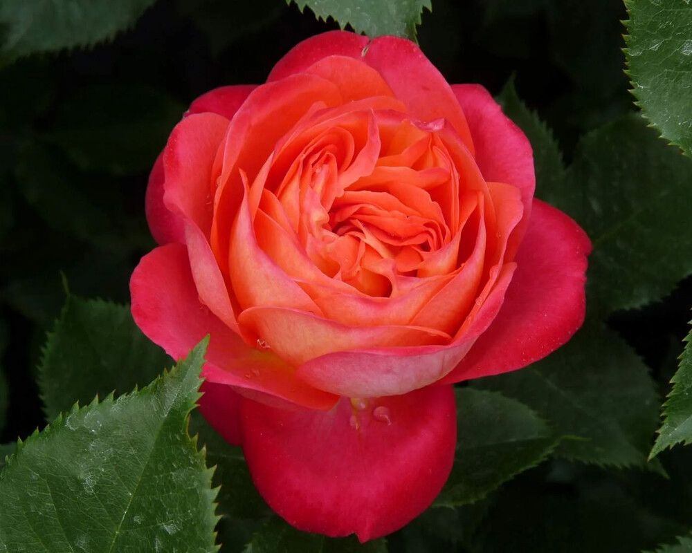 Сказочная роза с интенсивной окраской цветков. Превосходно смотрится издали. Цветки лососёво-оранжевые, густомахровые. Кусты прямые, густые.