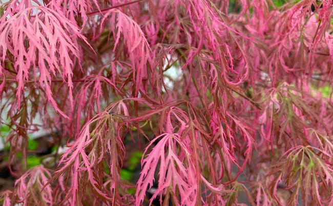Летом преобладает зеленый цвет, а осенью листья становятся ярко-красными.