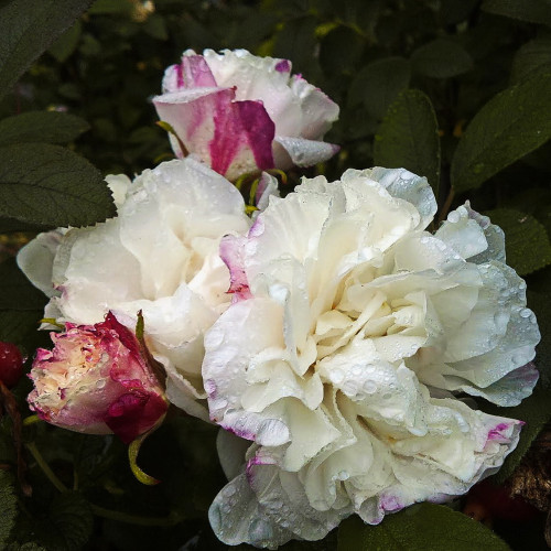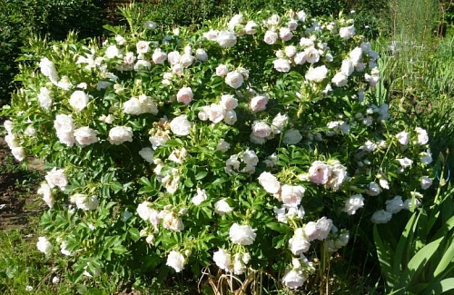 Гибрид розы ругозы (R. rugosa). Бутоны красные. Цветки диаметром 8-9 см, махровые, белые. Аромат нежный. Цветение повторное в течение сезона. После цветения образуются оранжевые плоды. Листва кожистая, высокоустойчивая к болезням. Куст высотой 90-100 см и шириной 150 см. Побеги почти без шипов. Хорошо растёт в тени. Зимует под устойчивым снежным покровом. Зона 3 (до -34ºС).