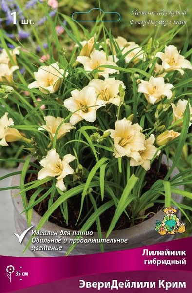 Все разновидности этой серии являются потомками популярной и заслуженно любимой ‘Стеллы де Оро’ (‘Stella d’Oro’), но еще более выносливые. Они имеют некрупные цветы (диаметром 8-10 см), но это совсем не является их недостатком, так как уже на третий год растение может выдать до 400 бутонов за весь период вегетации. Цветы в основном пастельных окрасок: кремовые, бронзовые, нежно-розовые, оранжево-желтые… Огромное преимущество лилейников этой серии — длительное цветение с конца июня по сентябрь, так как образование бутонов идет волнами, по несколько раз за лето.’ЭвериДейлили Крим’ – высота 35 см, кремовый с желтым горлом, обильно и продолжительно цветущий, диаметр цветка 8 см.