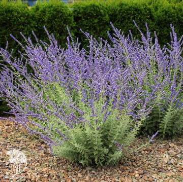 Это экзотическое ароматное растение с серо-зелёными душистыми листьями. Его небольшие фиолетово-синие цветки, собранные в колоски, плотно покрывают стебли, создавая впечатление красивого невесомого облака, если смотреть на него издалека. Перовския зацветает в июле и продолжает цвести до сентября. Она отличается высокой зимостойкостью, выдерживая понижение температуры до -30 °С