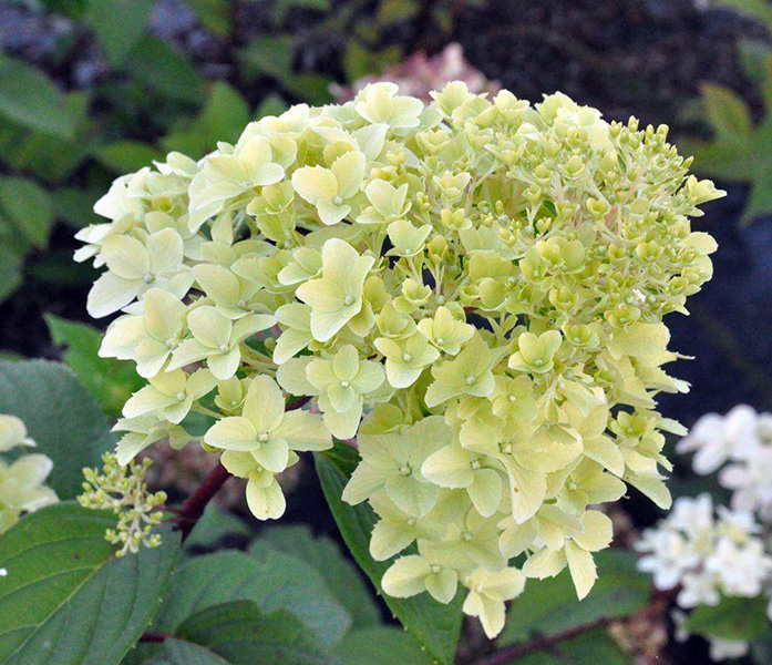 Цветение гортензии Диамантино начинается в середине лета и продолжается до поздней осени. Соцветия имеют пирамидальную форму и состоят из множества мелких цветков. На начальном этапе цветения они окрашены в нежный бело-кремовый оттенок, который постепенно приобретает розоватый оттенок к концу сезона. Это придает кустарнику особую декоративную ценность и делает его идеальным выбором для создания акцентов в саду.