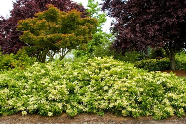 Миранда отличается белыми цветками со сладким медовым ароматом. Они собраны в щитковидные соцветия, 25 см. Цветение с июня и до сентября.