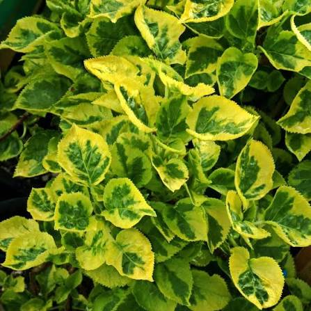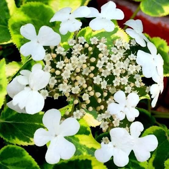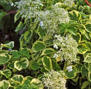 Черешковая гортензия Миранда – плетущаяся гортензия–лиана, достигающий 4.5 м в высоту. Годовой прирост объема – 30 см. Побеги плетущиеся. Листья яйцевидные, светло–зеленый с яркой желтой каймой, с зубчиками по краям.