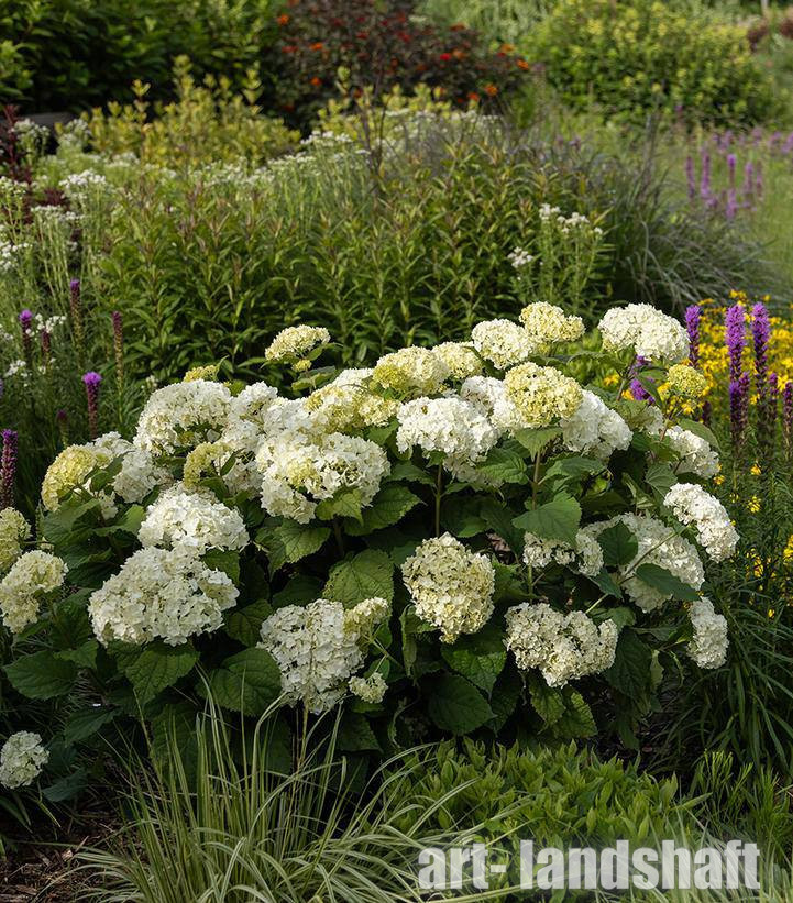 Гортензия древовидная Флавер Вау оправдывает своё название благодаря свои цветам, которые не перестают удивлять весь сезон! Её плотные округлые соцветия похожи на большие снежки и растут на крепких стеблях, которые удерживают цветы высоко в сильный ветер и дождь.
