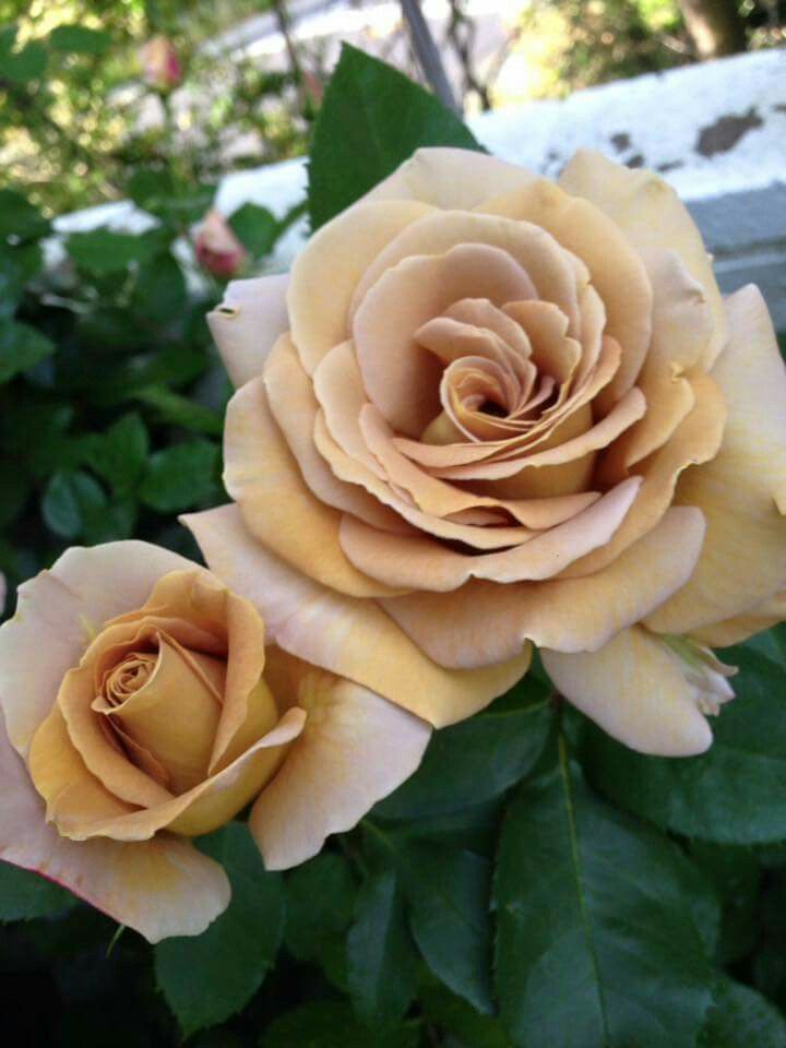 Грандифлора. Цветки диаметром 11 см, махровые (26-40 лепестков), великолепной формы, в небольших соцветиях, необычного, золотисто-коричневого цвета, постоянно меняет тона, в жару светлеет.