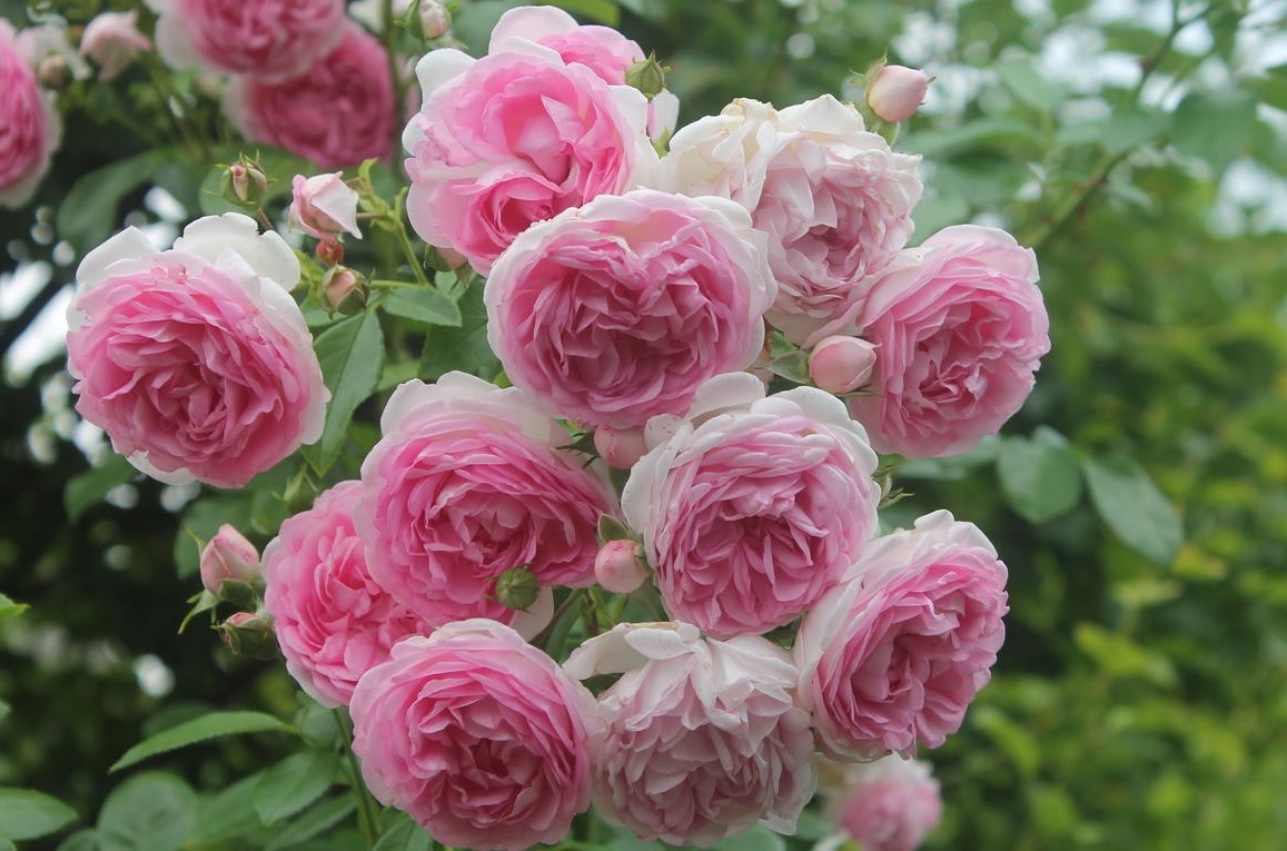 Цветки сиренево-розовые, густомахровые, диаметром 6-7 см, в соцветиях по 10-15 шт.