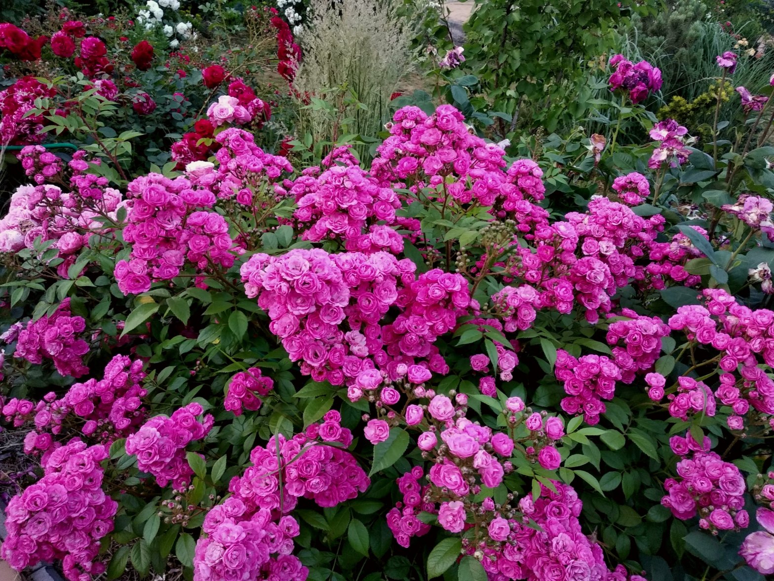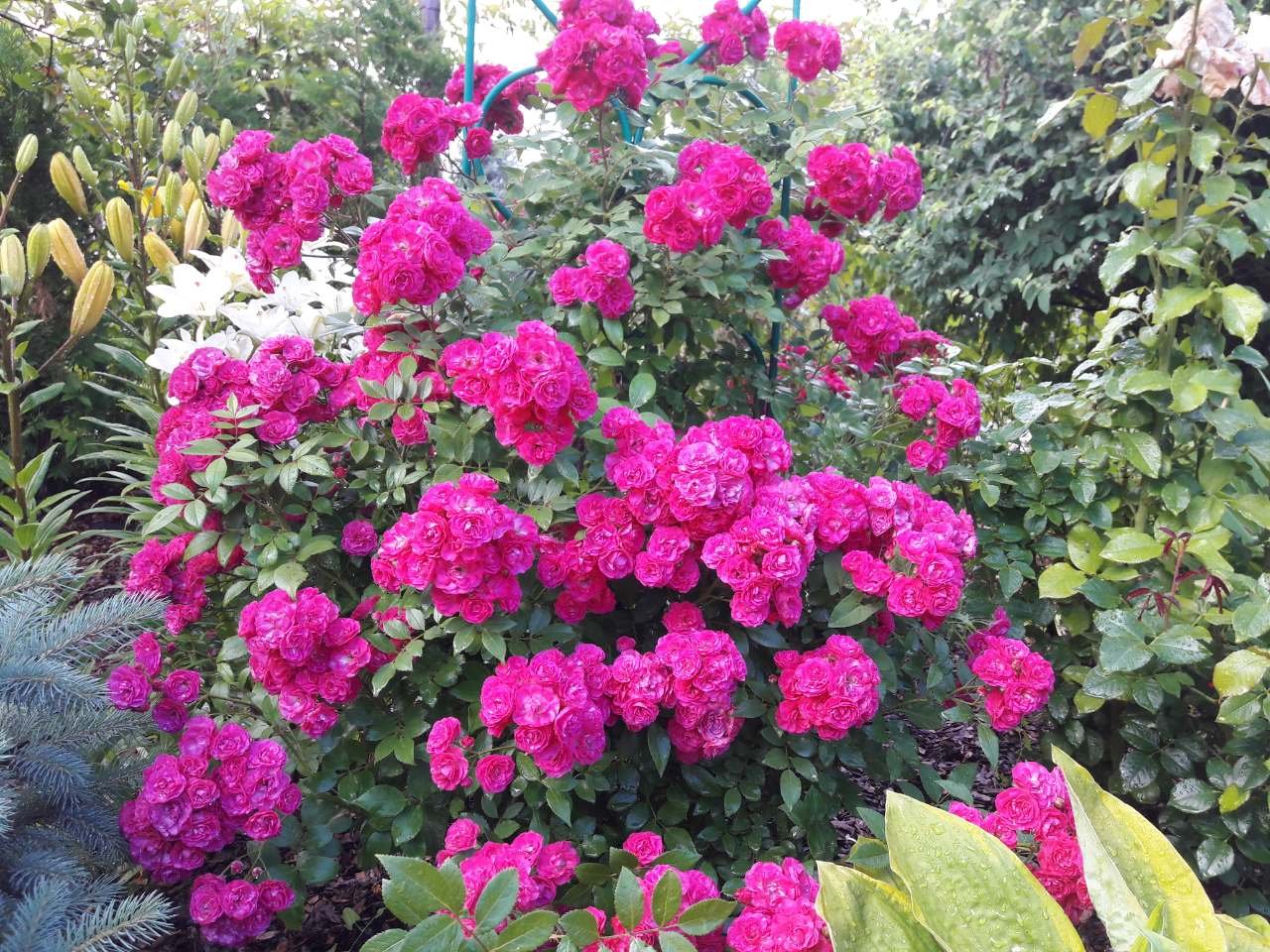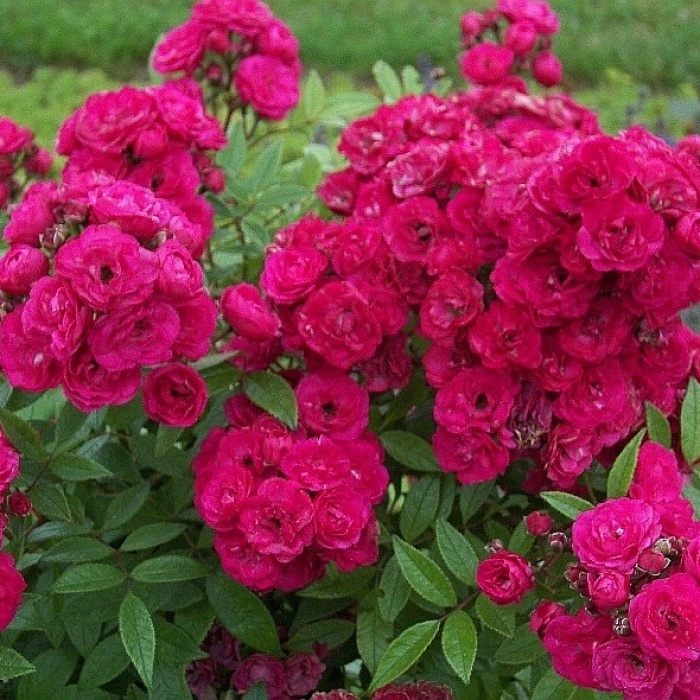 Цветки диаметром 3-4 см, густомахровые, фуксиново-розовые, невыгорающие, в соцветиях.