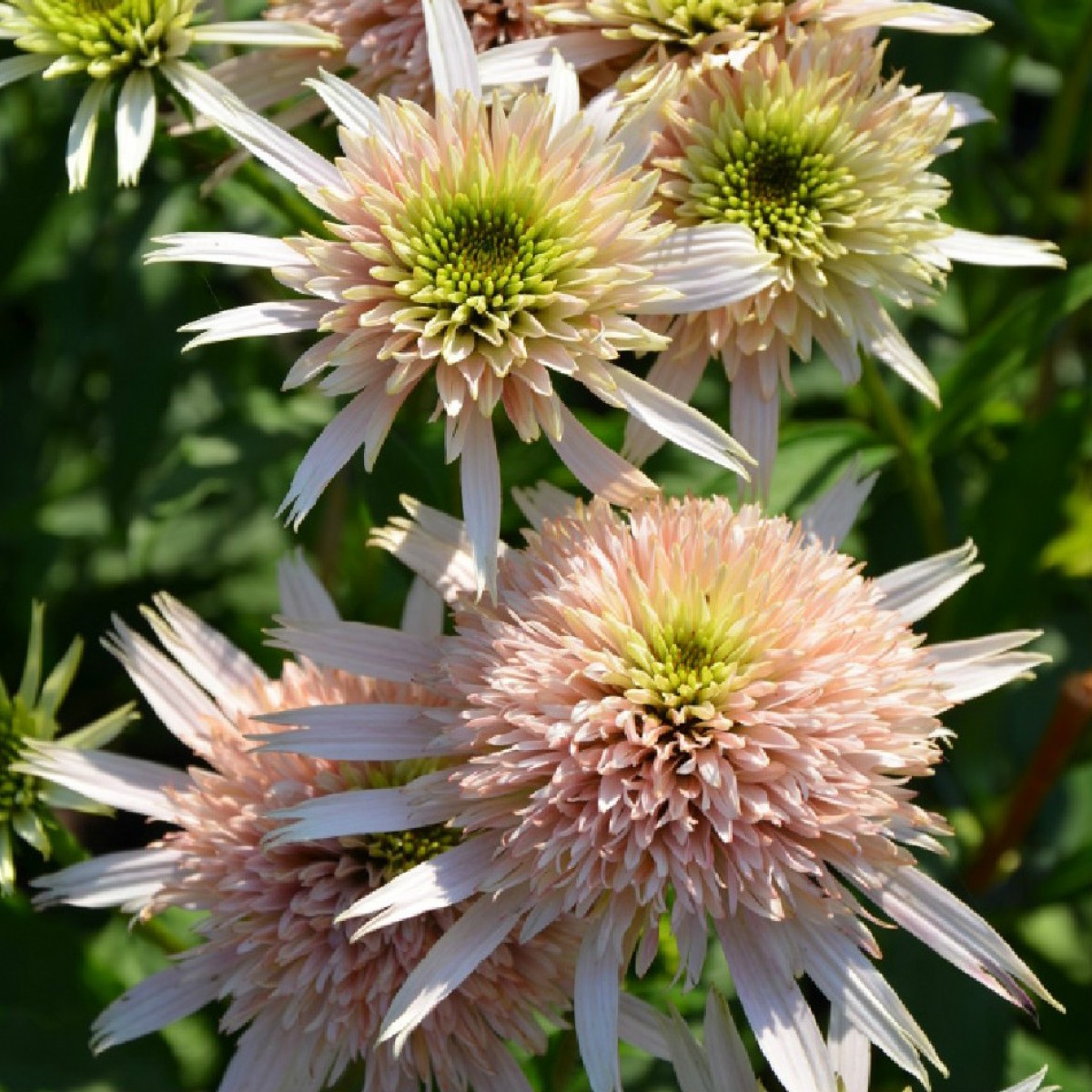 Сортосерия «Cone-Fections». Бутоны лаймово-зелёные. Цветки махровые, кремово-белые с вишнёвым румянцем и лаймово-зелёным центром. По мере цветения вишнёвый румянец становится более заметным и красиво контрастирует с оливково-зелёной листвой. Цветение в июле-августе. Высота при выращивании в открытом грунте 40-50 см, в контейнерах - 30-35 см. Место солнечное. Почва влажная, дренированная